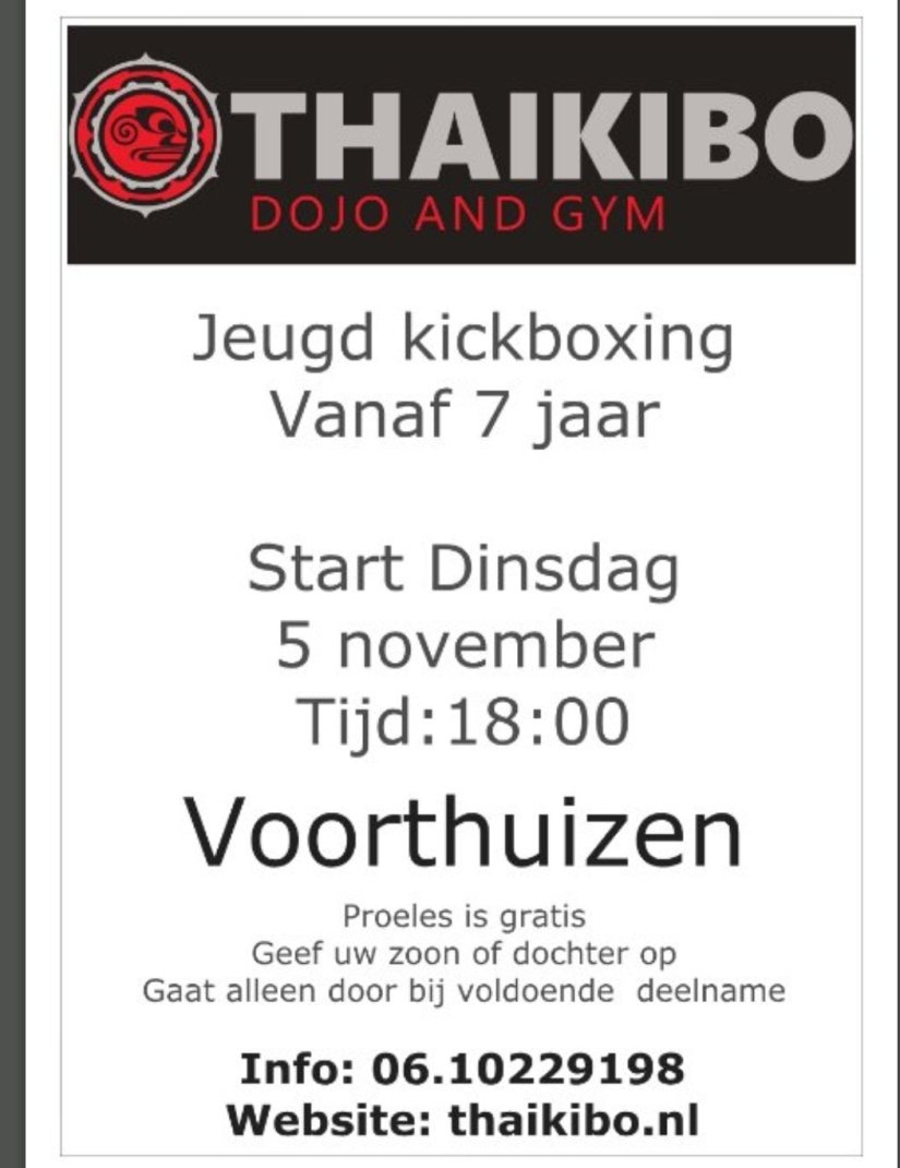 voor info: bel 06.10229198 of email: thaikibo@upcmail.nl
